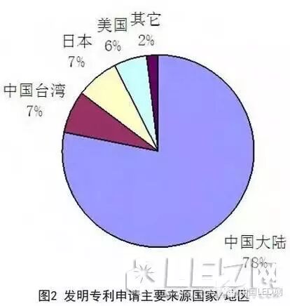 我国企业和个人在LED泡灯技术领域占主导地位,发明专利申请量占到总量的78%,其次为中国台湾、日本和美国。