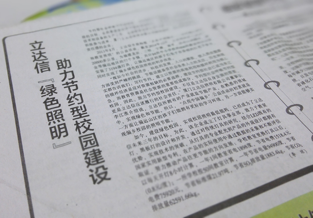 节约型社会呼唤节约型校园,但是建设节约型校园,实现节能减排的目标,必然要借助各种节能设备或技术,而学校本身不从事这些技术和设备的生产工作,这就需要各种从事节能产品生产研发的企业积极参与进来,厦门立达信照明有限公司就是这样一家有着高度社会责任感的企业。